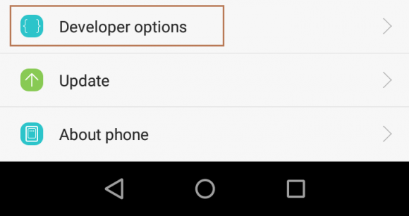 Go back to previous setting window or directly into "Settings" from menu. New selection will be visible - "Developer options", tap once on it