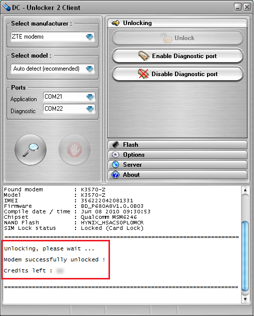 After you see that modem was successfully unlocked, restart it by disconnecting and connecting back. Now you can use it with any SIM card